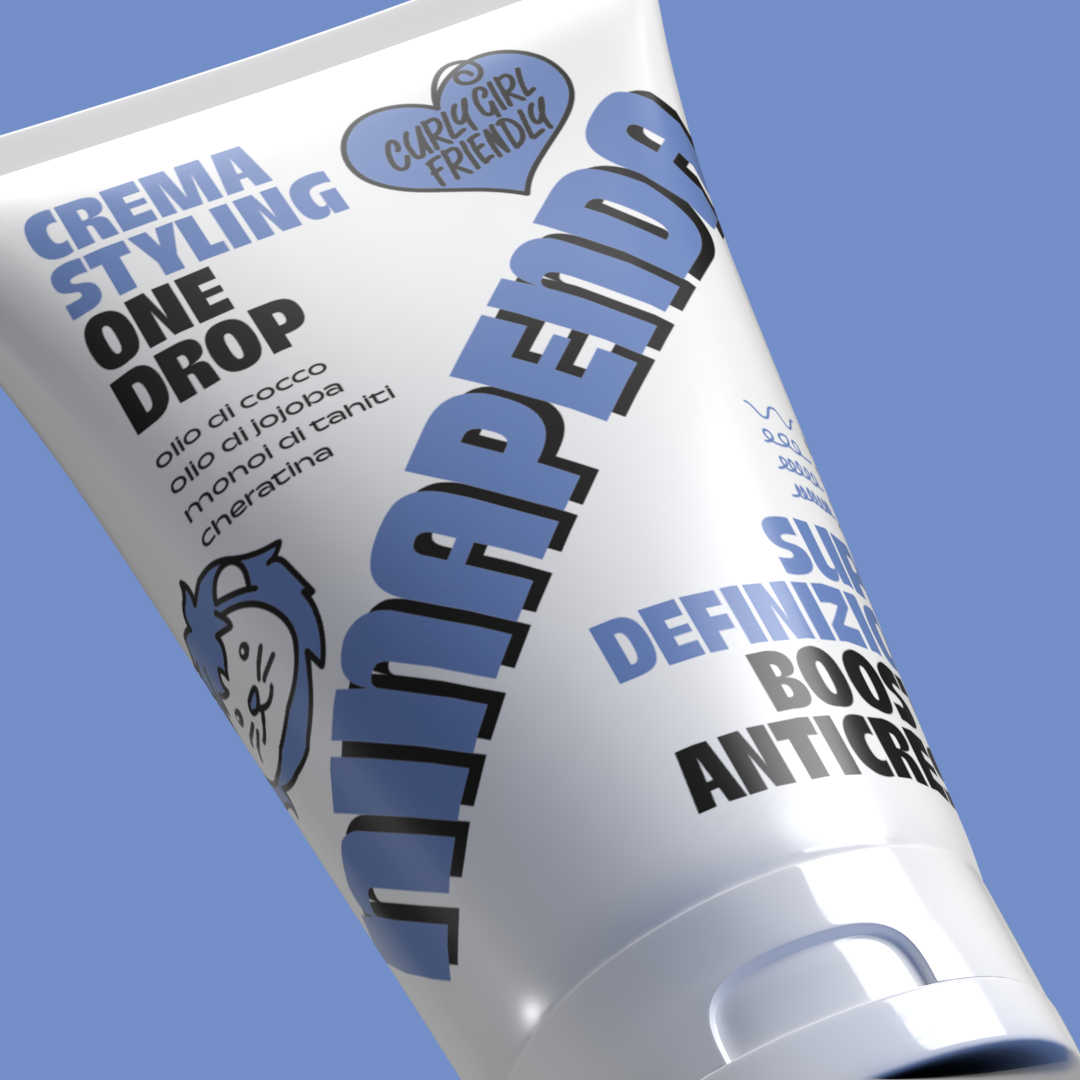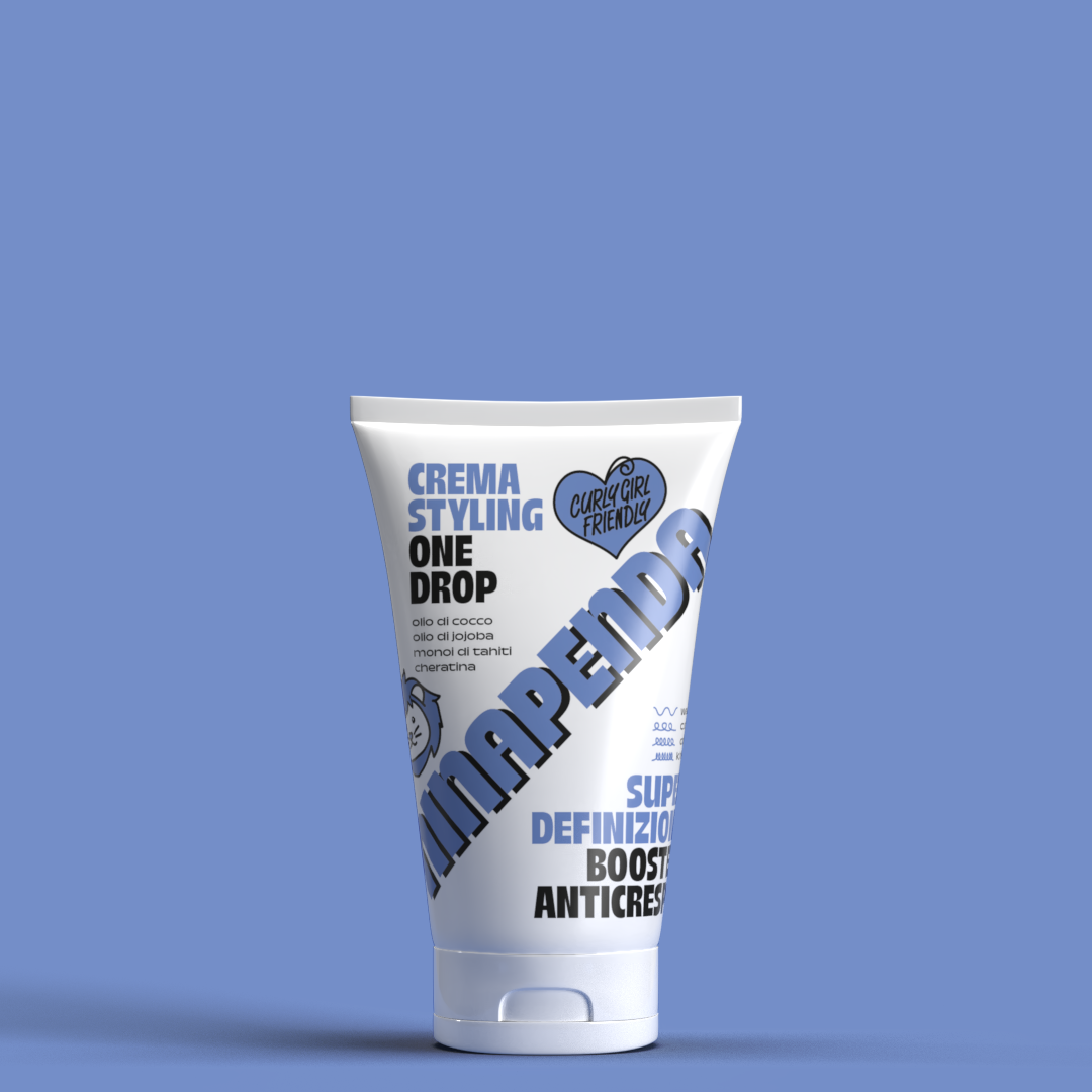 La nostra crema styling One Drop è l'arma segreta per i tuoi capelli ricci. Con una formula potenziata dai migliori ingredienti, tra cui l'olio di cocco, l'olio di jojoba e il monoi di Tahiti, questa crema è il booster anticrespo definitivo che aspettavi.